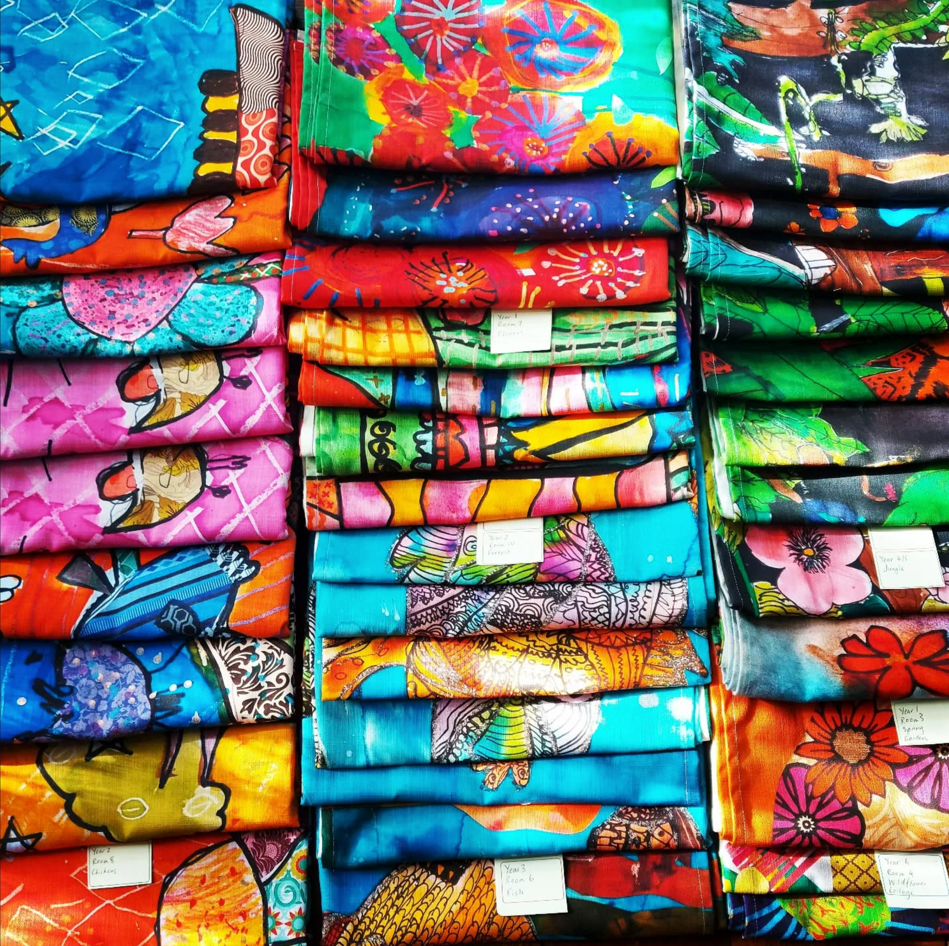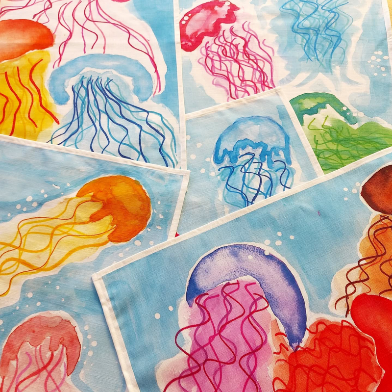 We specialise in working with art teachers to print their students' work on fabric. We can create tea towels and cushion squares featuring individual student artwork or collective class and whole school pieces.