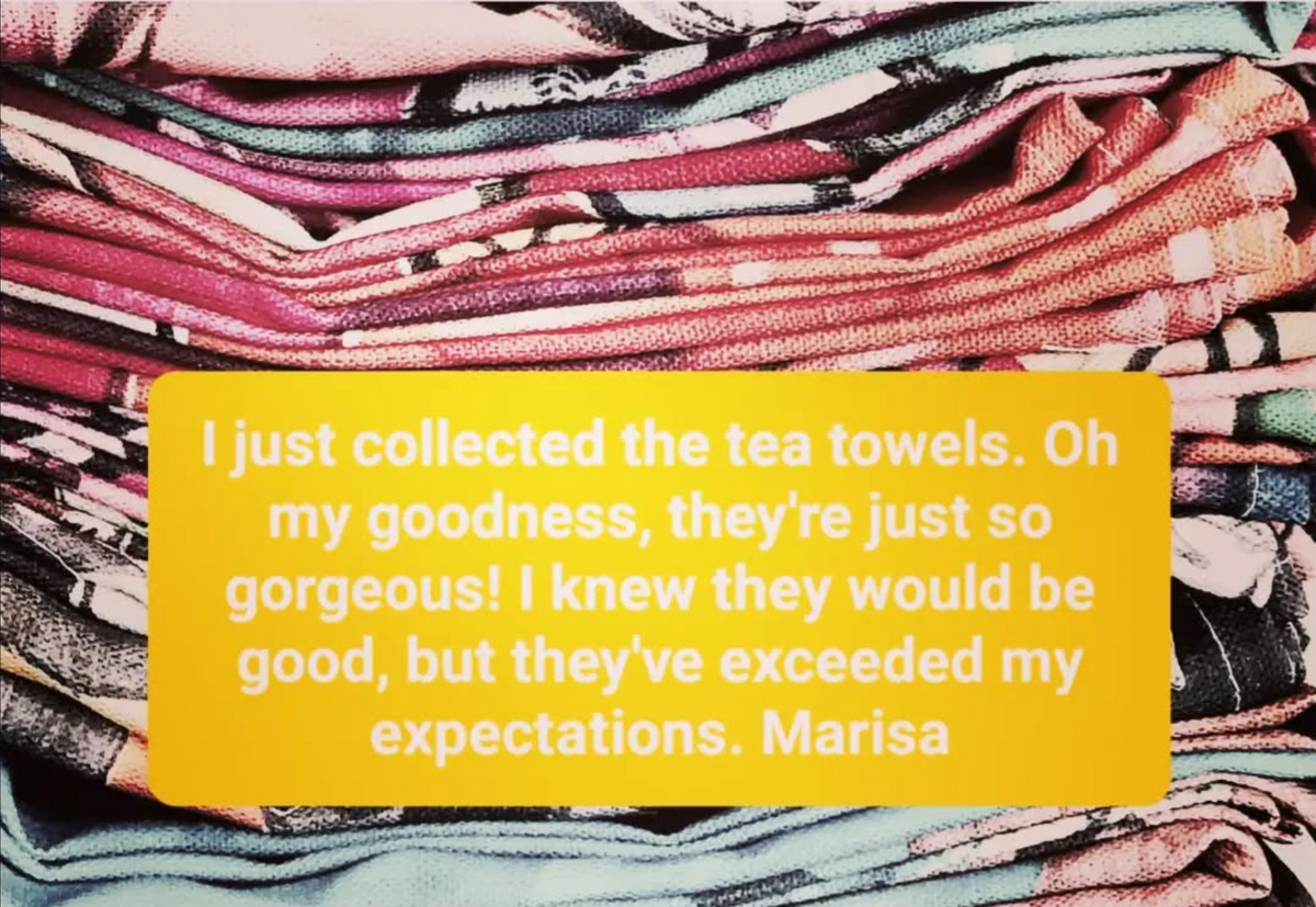 - We print care instructions on the seamed hem of the tea towel and can add your organisation’s name.